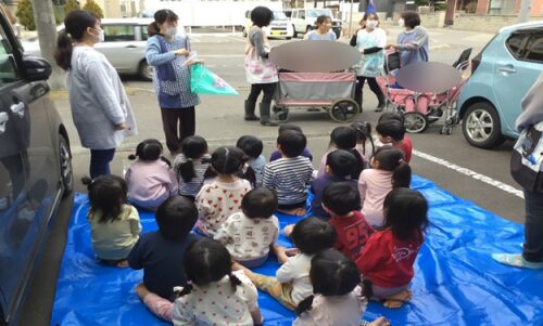 お誕生会は、2,3,4,5歳児のクラスで2名のお誕生日のお祝いをしました。沢山のお友だちの前で緊張しながらも質問に答え、お誕生カ-ドもらいました。2歳児のお友だちもあどけなく答えその可愛さに癒されましたよ
