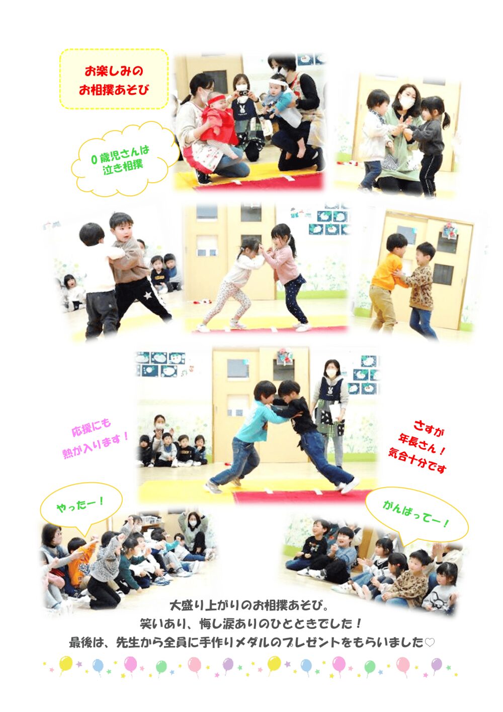 各保育園からのお知らせや、通園中のお子さまが行事で楽しく過ごす様子を、日々お伝えしていきます。 子どもたちの成長している様子や各園からの大切なお知らせをご確認ください。